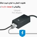 آداپتور PoE یو بی ان تی UBNT 24v 0.5A، با ولتاژ کاری 24 ولت و جریان 0.5 آمپرو توان مصرفی 12 وات میباشد. پورت این دستگاه 10/100 میباشد.